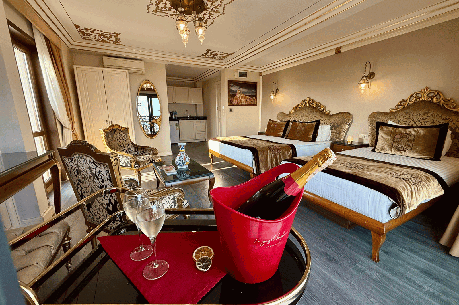 The Byzantium Hotel & Suites web sitesinden doğrudan rezervasyon yaparak en iyi fiyatımızı garantileyin. Ödeme sırasında “byzantium” kupon kodunu girin ve tüm odalarda anında %5 indirimden yararlanın. Doğrudan rezervasyon yapın ve Ayasofya ve Sultanahmet Camii'ne sadece birkaç adım uzaklıkta konaklayarak ekstra avantajlardan yararlanın.